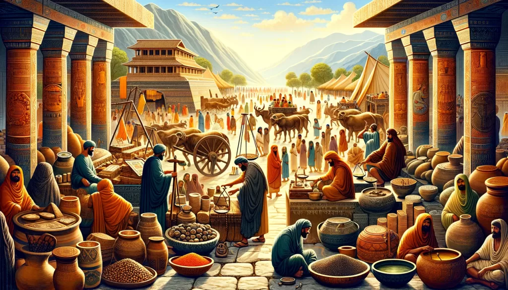 - 国内交易: 都市間の交易が盛んであり、各都市は特産品を持ち寄り、物資を交換していました。都市間の道路網も整備されており、物資の移動が円滑に行われていました。