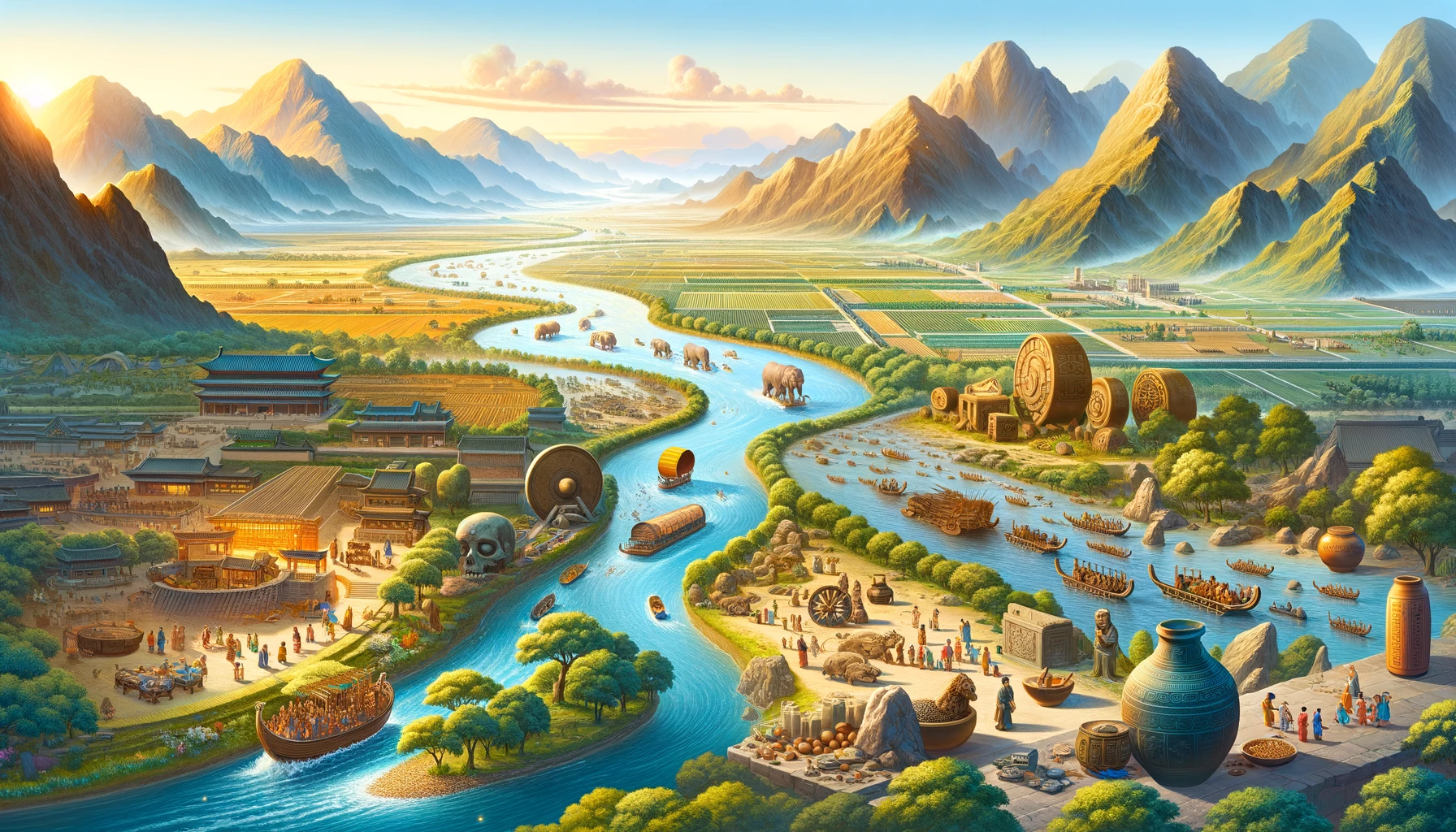 黄河文明は、古代中国の歴史と文化の源泉であり、その遺産は今日まで続いています。この文明の発展と遺産を理解することで、現代の中国社会や文化の背景を深く知ることができます。黄河文明の物語は、古代の知恵と創造力を今に伝える貴重な遺産です。