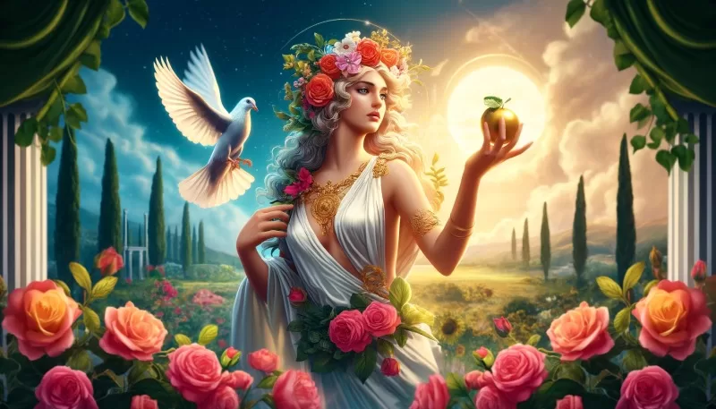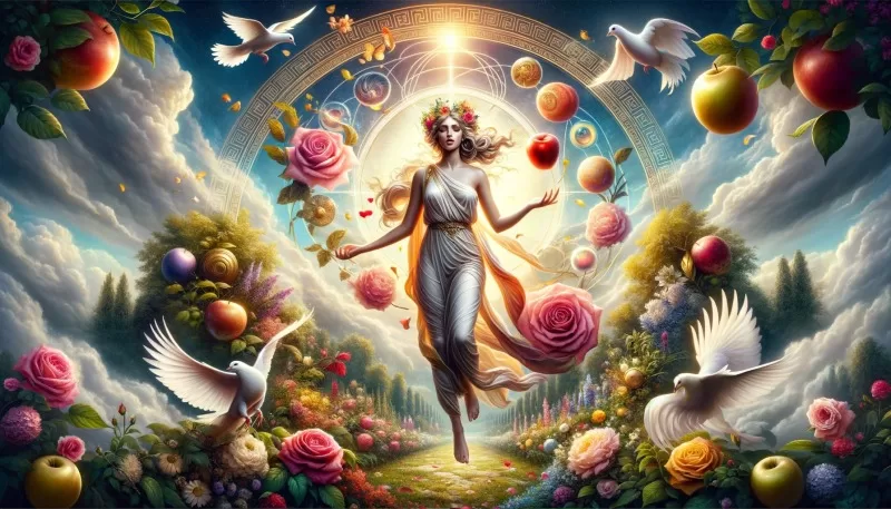 アプロディーテの象徴には、バラ、ハト、貝殻、鏡、そしてリンゴがあります。バラは彼女の美しさと愛を象徴し、ハトは純粋な愛のシンボルです。貝殻は彼女の誕生を象徴し、鏡は美の象徴、リンゴは欲望と誘惑の象徴とされています。彼女の美しさと魅力は、古代ギリシャだけでなく、現代に至るまで多くの文化や芸術に影響を与えています。
