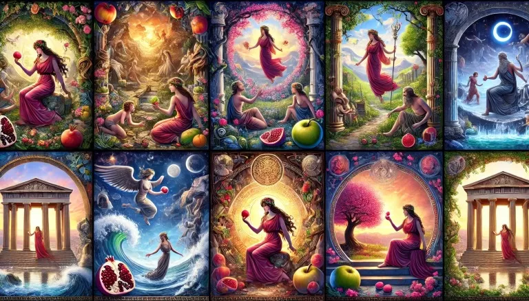 この神話は、ペルセポネの再生の力と彼女の冥界での地位を強調しています。彼女の行動は、生命の循環と再生のサイクルを示しており、彼女の存在が自然界に与える影響を示しています。ザクロの実は、ペルセポネが冥界と地上を往復する理由を説明する重要な要素です。