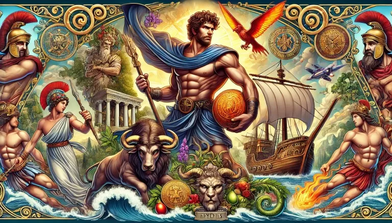 イアソンは、勇気と知恵、そしてリーダーシップを持つ英雄として知られています。彼の象徴としては、アルゴ船、金羊毛、そしてアルゴナウタイの仲間たちが挙げられます。これらの象徴は、彼の英雄的な業績と冒険を強調しています。