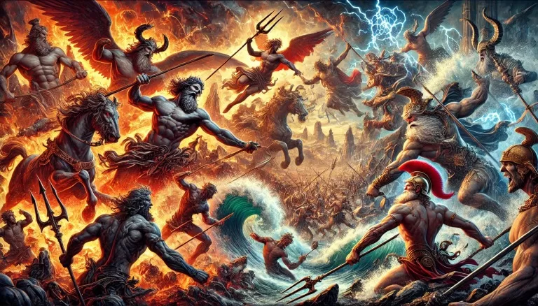 4. 最終決戦: 戦争の最終決戦では、ゼウスがクロノスと直接対決しました。ゼウスは、雷霆を使ってクロノスを打ち倒し、ティターンの支配を終わらせました。この勝利により、オリンポスの神々が宇宙の支配権を手に入れました。最終決戦では、神々の連携と戦略が勝利の鍵となり、ティターンはついに敗北しました。