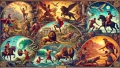 3. 巨大な戦い: 戦争は、神々とティターンの間で巨大な戦いとなりました。神々は、様々な武器と力を駆使し、ティターンに立ち向かいました。戦場は、地上と空中の両方に広がり、壮大な光景が繰り広げられました。山が崩れ、海が荒れ狂う中、神々とティターンは壮絶な戦いを繰り広げました。