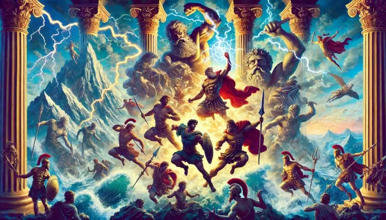 3. オリンポスの神々の登場: ゼウスは、救出した兄弟姉妹(ポセイドン、ハデス、ヘスティア、ヘラ、デメテル)と共にオリンポス山を拠点にし、ティターンに対抗するための同盟を築きました。オリンポスの神々は、ゼウスをリーダーとし、ティターンとの戦いを開始しました。