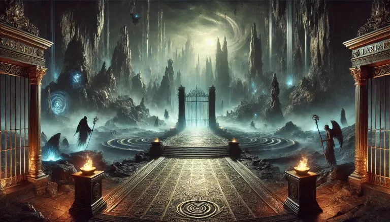- タルタロスの地理: タルタロスは、地表から非常に遠く、夜と昼が交互に訪れる冥界の深淵です。ヘシオドスの『神統記』によれば、タルタロスは青銅の床で囲まれ、鉄の門によって閉ざされています。これらの要素は、タルタロスがどれだけ到達困難であり、絶望的な場所であるかを強調しています。